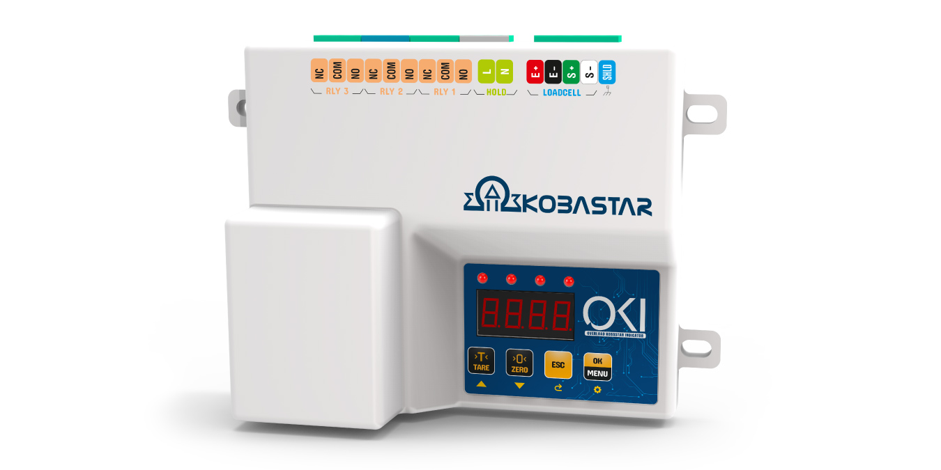 - Kobastar OKI, yüksek hassasiyetli titreşim ve salınım filtrelemesine sahip, 3 röle ve 1 giriş bulunan bir tartım indikatörüdür.